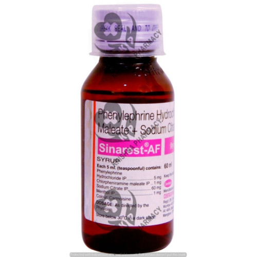 INTRODUCTIONSinarest-AF New Syrup is a combination medicine used in the treatment of common cold symptoms. It relieves allergy symptoms such as runny nose, stuffy nose, sneezing, watery eyes and congestion or stuffiness.
